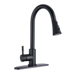This Rhys brushed chrome commercial-style faucet from Allen + Roth will add a professional touch to your kitchen. It is suitable for single or three-hole installations with an optional deck plate. The dual function spray head features stream and strong spray settings to help make cleanup a breeze. It’s backed by a limited lifetime warranty.