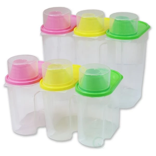 These handy plastic containers are perfect for storing cereal, flour, rice and more. They will keep your pantry and kitchen neat and organized, while keeping your food fresh. The six-pack includes one small and one large green, one small and one large yellow, and one small and one large pink container.