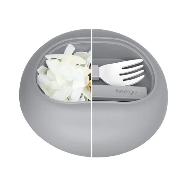 Our Bentgo bowl makes eating warm foods on-the-go easier than ever. The all-in-one design offers mess-free transport of soup, noodles, rice, stew, chili, cereal and so much more so you can enjoy a delicious and nutritious meal at school, work or just about anywhere. Sealed for Freshness Bentgo bowl’s main compartment is made with two levels of leak-resistant protection to help keep wet foods from spilling. First, the inner lid is equipped with a leak-resistant silicone o-ring that fits snugly inside the bowl sealing in freshness while also preventing liquids from leaking. Second, the rim of the bowl itself is threaded so you can twist the top on securely for mess-free transport. Insulation technology keeps foods warm or cool longer because Bentgo bowl now offers an extra layer of insulation to help keep hot foods warm up to 4 hours. Always have a spoon and fork when you need them thanks to the expandable and collapsible set that fits conveniently inside Bentgo bowl’s top dish.