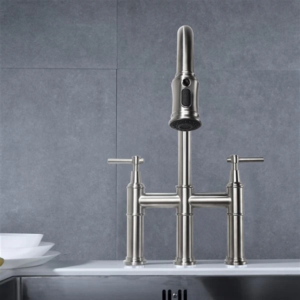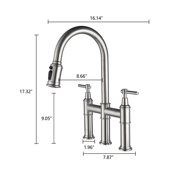 Be the first to review “Clihome 17.32-in Nickel Bridge Kitchen Faucet With Pull-Down Sprayhead In Spot” Cancel reply
