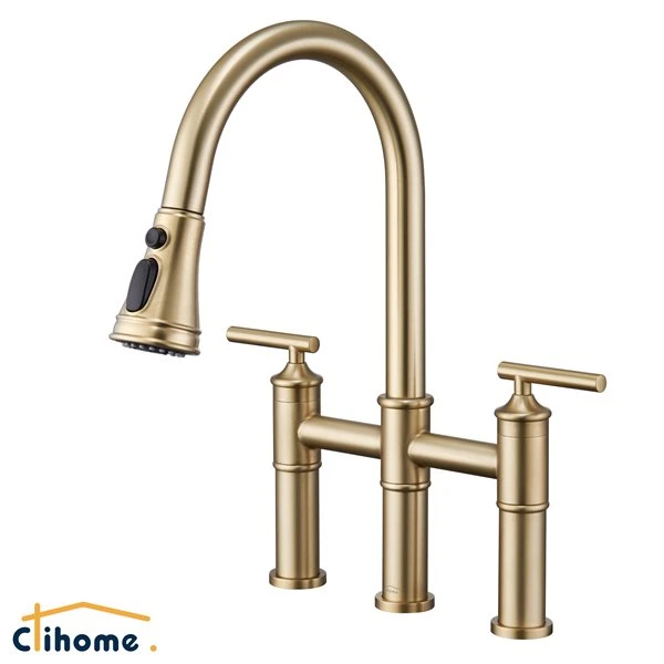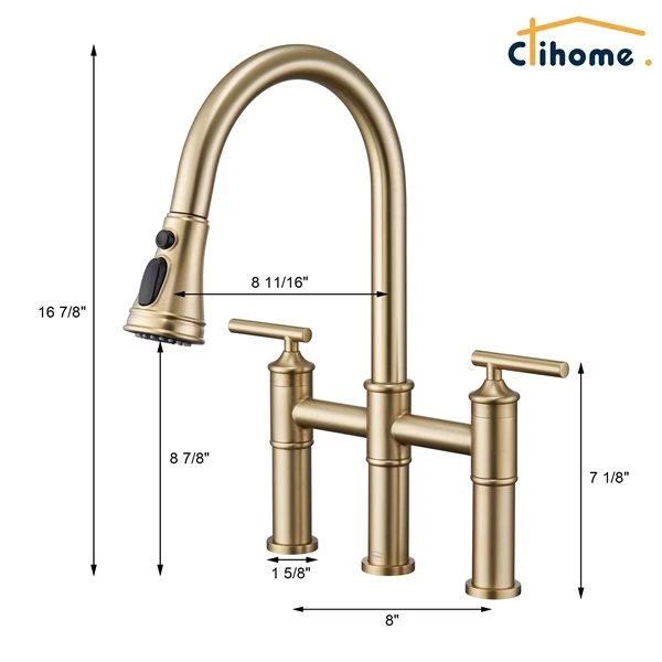 Be the first to review “Clihome Brushed Gold Pull Down 2-Handle Kitchen Faucet” Cancel reply