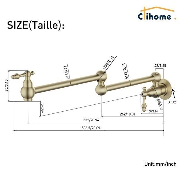 Be the first to review “Clihome Brushed Gold Retro Wall Mounted Pot Filler Retro Kitchen Faucet” Cancel reply