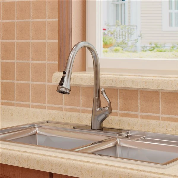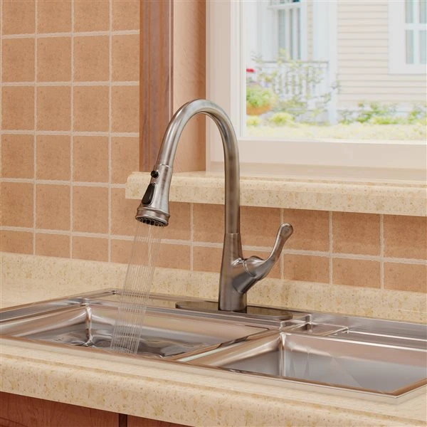 Be the first to review “Clihome Brushed Nickel 3-Function Single-Handle Pull Down Spout Kitchen Faucet” Cancel reply