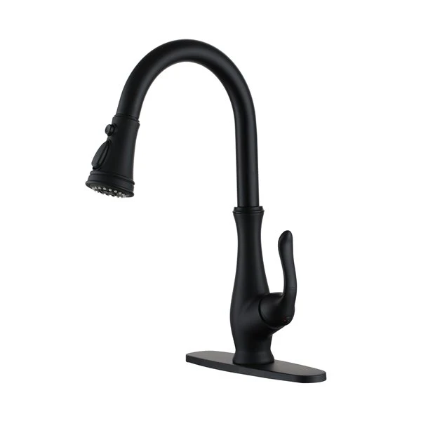 This pull-down kitchen faucet features a sleek silhouette and unobstructed lines. The main body is zinc-clad copper with low lead construction, adding elegance and beauty to this single-handle faucet. Its seamless gooseneck and high arch provide plenty of room for cleaning or filling large pots and pans. Its tri-functional spray head provides three water discharge modes that can be freely switched.