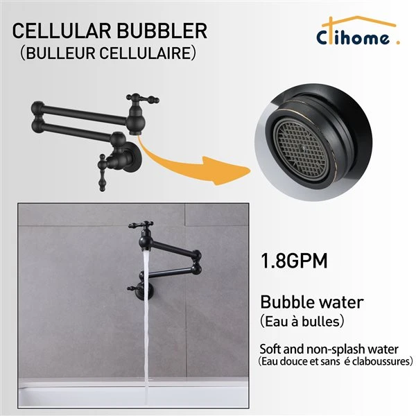 Be the first to review “Clihome Matte Black Retro Wall Mounted Pot Filler Retro Kitchen Faucet” Cancel reply