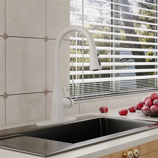 Be the first to review “Clihome Matte White 3-Function 1-Handle Pull-Down Spout Kitchen Faucet” Cancel reply