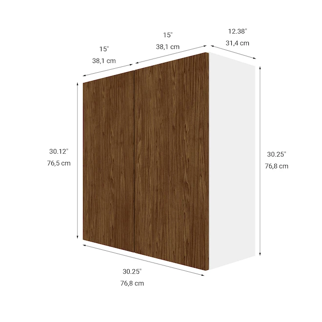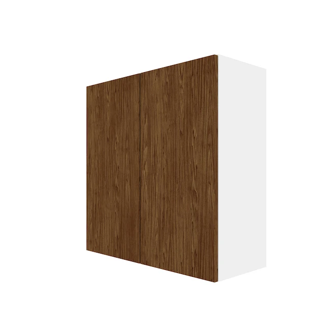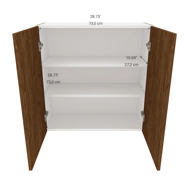 - Melamine door front in walnut woodgrain finish with 3/4-In melamine panel construction