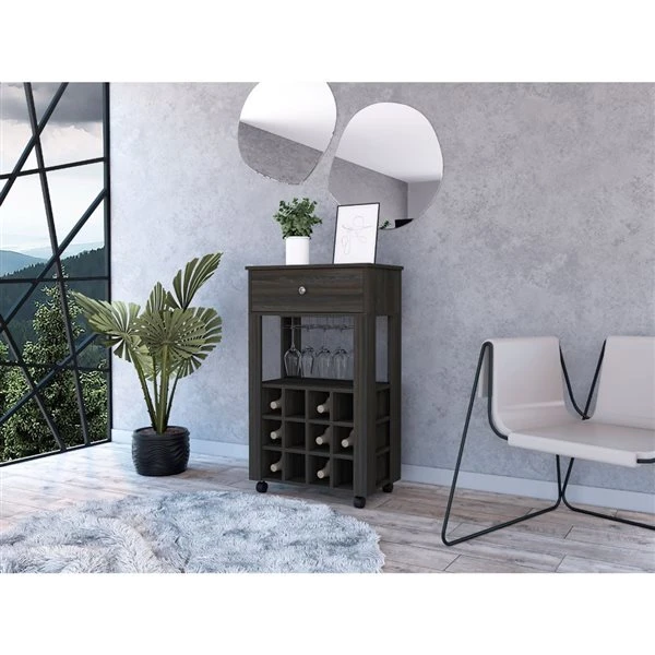 If you enjoy wine and want a contemporary setting in which to store your favourite bottles and glasses, this bar has both. It includes twelve compartments for keeping your wine organized and fresh, as well as the capacity to store your glasses, as well as a huge drawer and caster wheels for improved movement and adaptability.