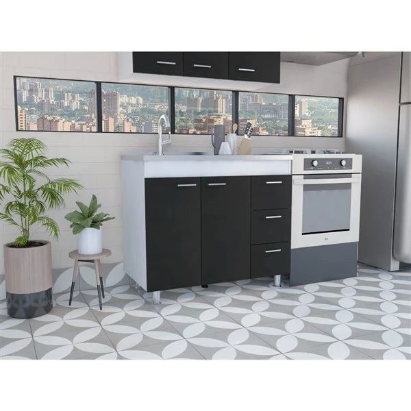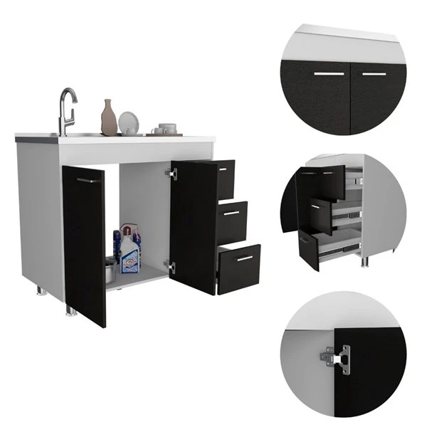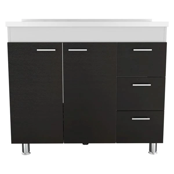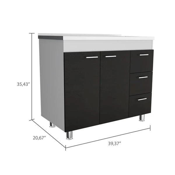 This Darien base cabinet is the perfect way to give your kitchen some much-needed extra storage space. Not only does it come with a handy hole for your faucet on its countertop, but it also features plenty of other compartments and three drawers that are perfect for storing all sorts of kitchen supplies. It also includes a two-door cabinet, so don’t wait another day struggling to find a place to put your pots and pans – order this cabinet today!