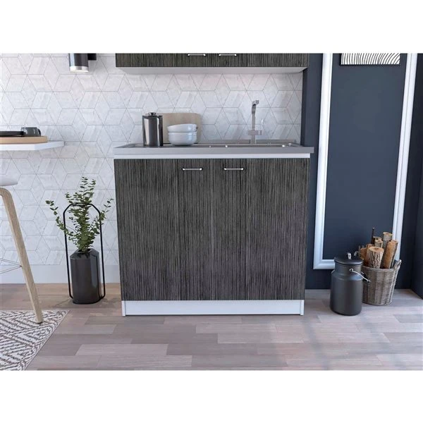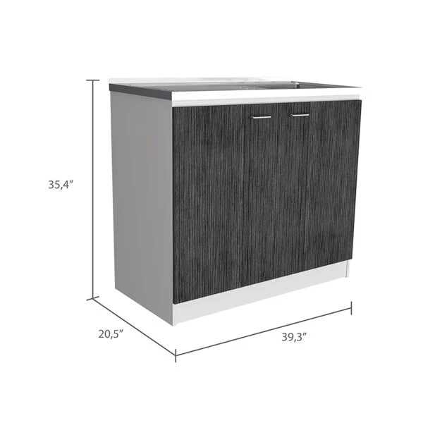 Is your utility sink cracked and broken? Is it leaking underneath? Do you want to remodel your kitchen? The Oklahoma utility sink and cabinet is your best option to solve all of the above problems. The vanity base strikes a rectangular silhouette, featuring a two-tiered shelving unit inside perfect for storing pots and pans or placing a basket of accessories, while two cabinet doors provide private storage for anything else you might need. Features an integrated steel sink. The faucet is not included.