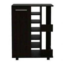 This highly versatile cart made of particle board can easily fit into any room in your house, especially your kitchen and living room. Perfect for entertainment and storing anything you need to move from one room to the next. The most valuable features of this cart are the cabinet, the side shelves, the six cubbies and the spacious top which provide plenty of space to store your liquor bottles, glasses, or items that you need to entertain your guest. The lockable casters will allow you to take the party anywhere in your house.