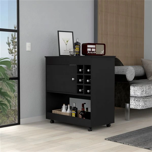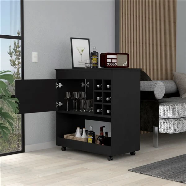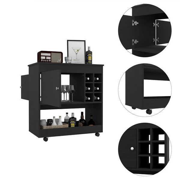 This Texas bar cart is perfect for anyone who wants a touch of luxury and elegance in their home bar with contemporaneous style. With six-bottle cubbies to store your wine and keep it fresh, with a brand countertop to show your style, this bar cart is perfect for any space. The caster wheels make it easy to move around, so you can always put it in the perfect spot.