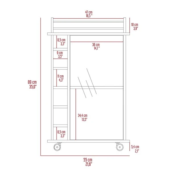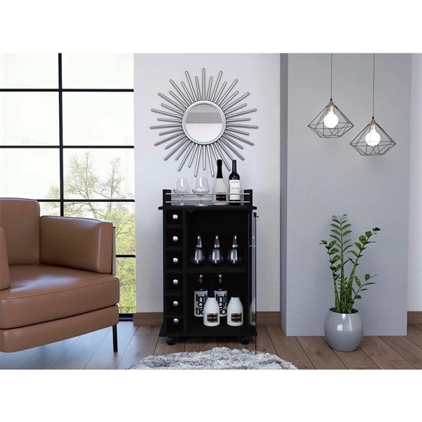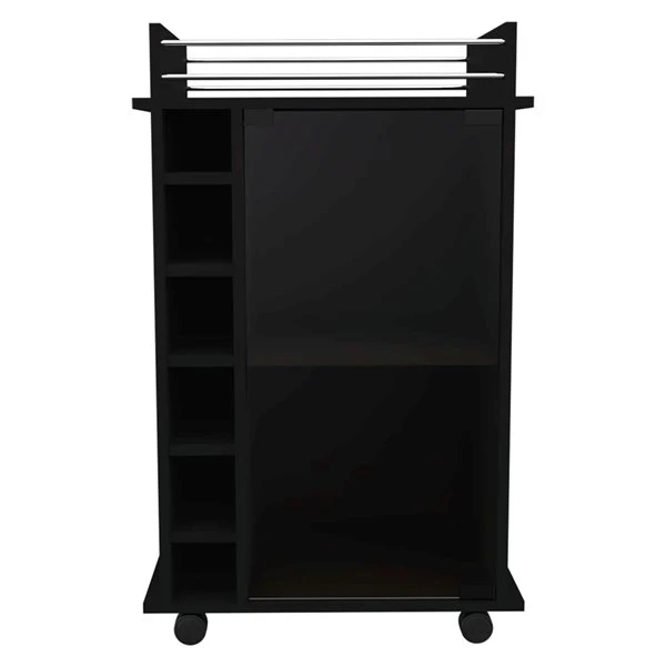 The Vegas bar cart is the best way to receive your guests; this beautiful cart is designed to facilitate your work, that is why it has been designed with four wheels that allow efficient mobility throughout the home without the need for efforts. Nifty and modern yet with a classic feel, this perfectly sized mobile bar cart brings everything you need to keep the entertainment going. With all the features you will need such as: a glass door cabinet with two interior shelves with a 13.5-in height will provide plenty of space to store your liquor bottles, glasses, or items that you need to entertain your guest. On the side, a six-bottle cubbies rack will give you provide you the space you need to keep the wine bottles handy.