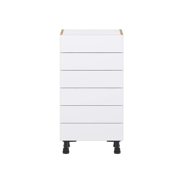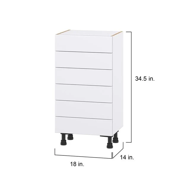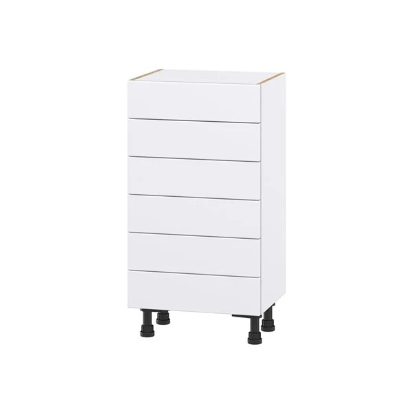 Lasalle glacier white slab assembled shallow base cabinet with 6 drawers (18-in W x 34.5-in H x 14-in D)