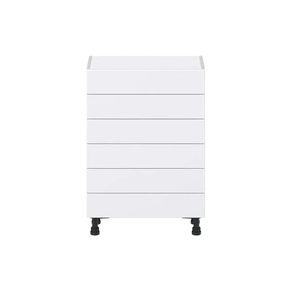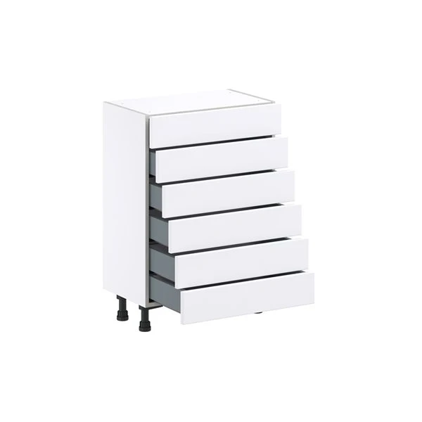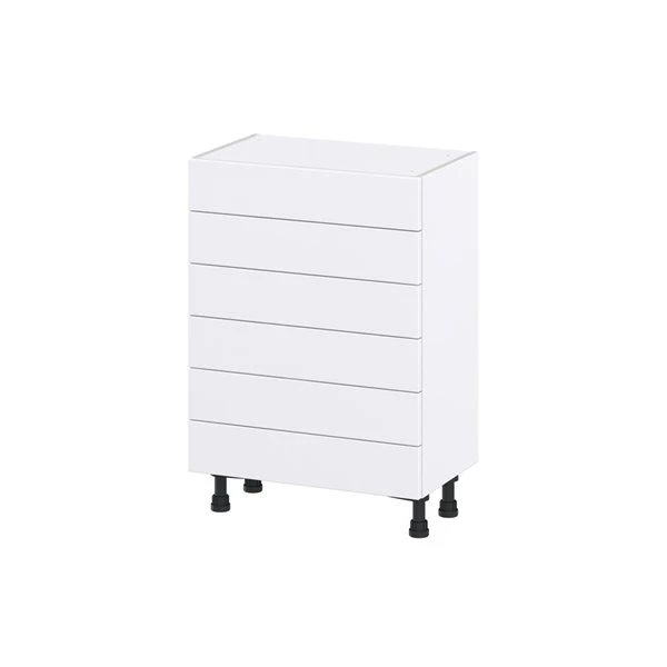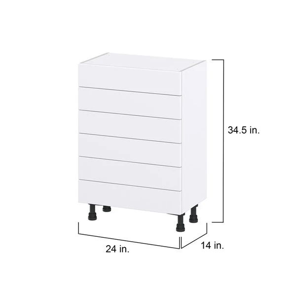Rosemont Glacier White Shaker Assembled Shallow Base Cabinet with 6 Drawers (24 in. W X 34.5 in. H X 14 in. D)