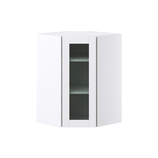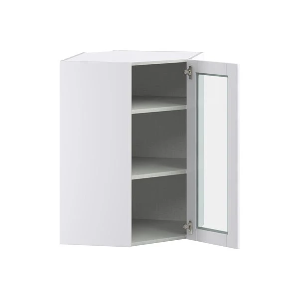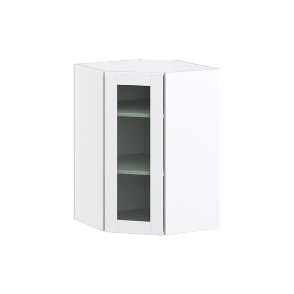 Rosemont Glacier White Shaker Assembled Wall Diagonal Corner Cabinet with Glass Door (24 in. W X 35 in. H X 14 in. D)