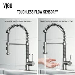 VIGO Edison Chrome 1-Handle Deck Mount Pull-Down Touchless Kitchen Faucet – Soap Dispenser