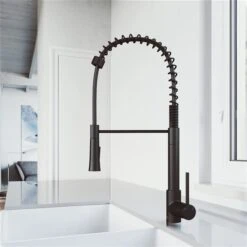 VIGO Laurelton Matte Black 1-Handle Deck Mount Pull-Down Kitchen Faucet – Deck Plate Included