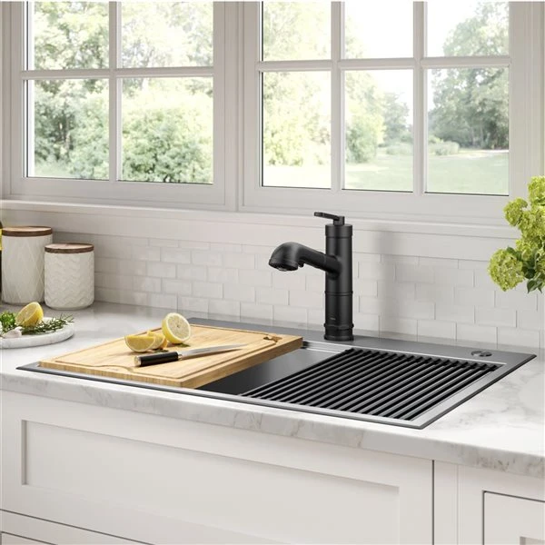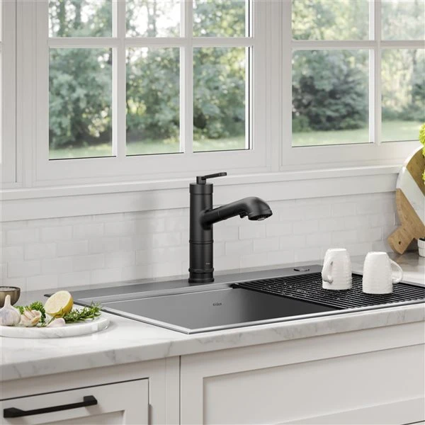 Be the first to review “Kraus Allyn Deck Mount Matte Black Pull-Out Single Handle Kitchen Faucet” Cancel reply
