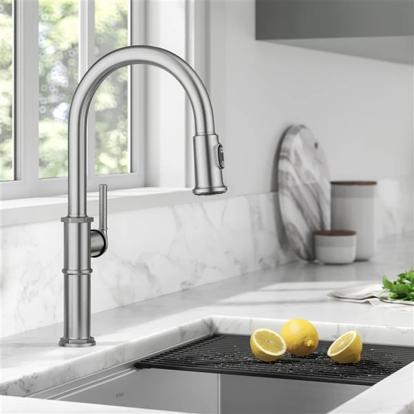 Be the first to review “Kraus Allyn Spot-Free Stainless Steel Industrial 1-Handle Deck Mount Pull-Down Handle/Lever Kitchen Faucet” Cancel reply