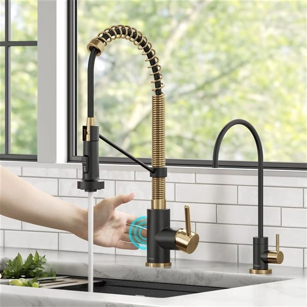 Be the first to review “Kraus Bolden Deck Mount Brushed Brass/Matte Black Sensor Pull-Down Kitchen Faucet” Cancel reply