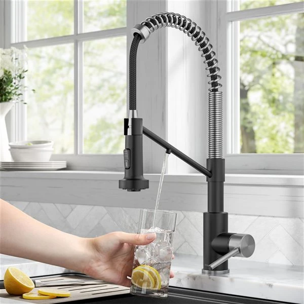 Be the first to review “Kraus Bolden Deck Mount Spot-Free Stainless Steel/Matte Black Pull-Down Filter Kitchen Faucet” Cancel reply