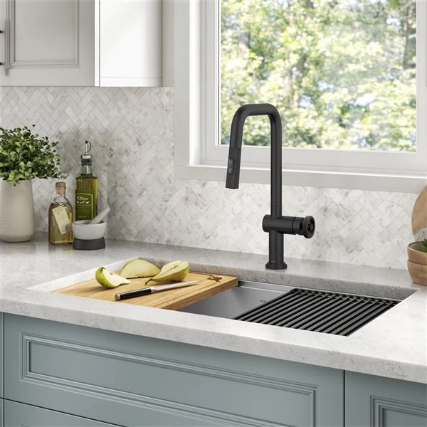 Be the first to review “Kraus Urbix Deck Mount Matte Black Pull-Down Single Handle Kitchen Faucet” Cancel reply