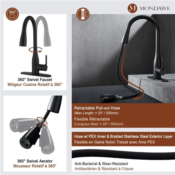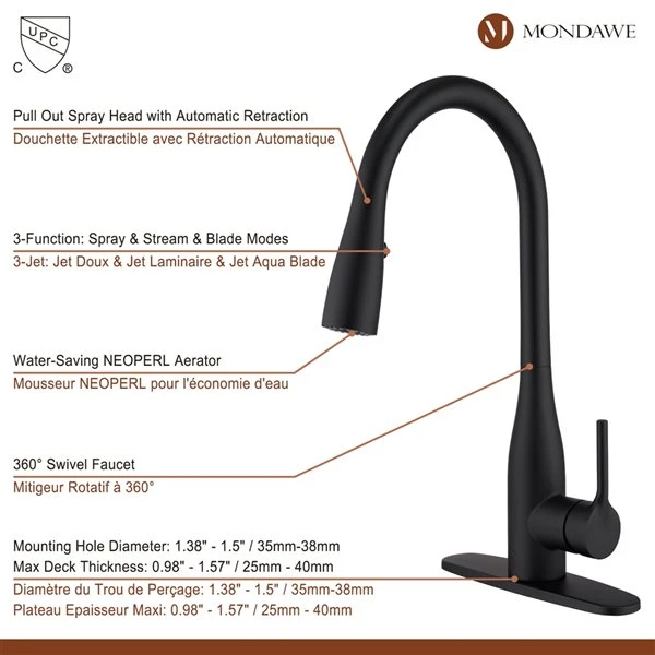Be the first to review “Mondawe Matte Black 3-Function Pull-down 1-handle Deck Mount Kitchen Faucet” Cancel reply