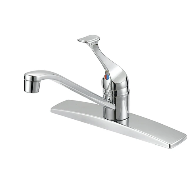 This kitchen faucet by Project Source has a chrome finish and clean lines that will look great in any kitchen. The single-handle lever design makes it simple to use and efficient. This faucet is ADA-compliant, and thus designed to meet the needs of people with reduced mobility. It also meets NSF low lead standards to ensure your water is safe to drink. This product is backed by a limited lifetime warranty.