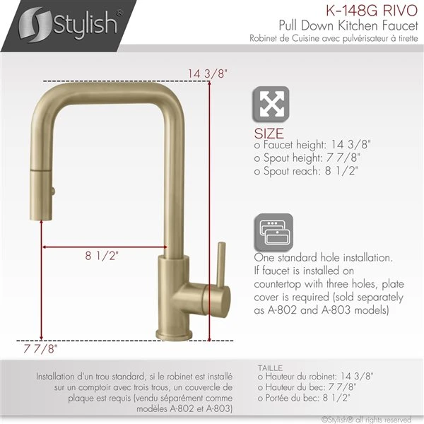 Be the first to review “Stylish Rivo Brushed Gold 1-Handle Deck Mount High-Arc Handle/Lever Commercial/Residential Kitchen Faucet” Cancel reply