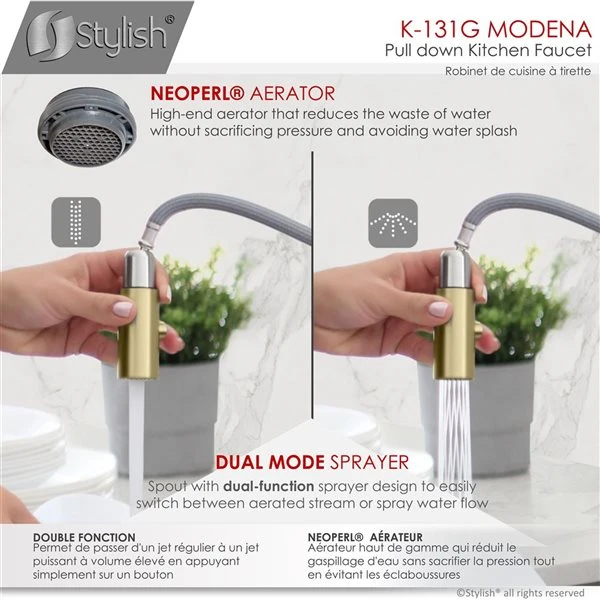 Your kitchen will stand out with this perfect combination. Get the best of both worlds when you combine our K131 Pull down single-handle kitchen faucet and our K142 stainless steel cold water tap kitchen faucet. Not only will they look amazing together, but they will also give your kitchen an updated look. Imagine having the convenience of on-tap water filtration right at your sink. This is now possible with our cold water tap kitchen faucet. Made from premium stainless steel, this water tap kitchen faucet has a sturdy and durable structure. It is beautiful stainless-steel finish blends well with modern kitchen decors. Our pull-down pull down kitchen faucet creates a bold statement that is perfect for the modern kitchen. Both faucets rotate 360° allowing total flexibility and manoeuvrability for all your cooking, cleaning, and water needs.
