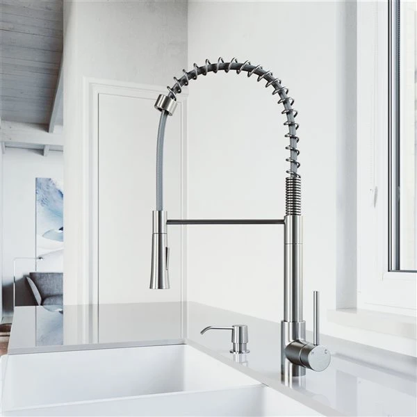 Be the first to review “VIGO Laurelton Stainless Steel 1-Handle Deck Mount Pull-Down Kitchen Faucet – Soap Dispenser” Cancel reply