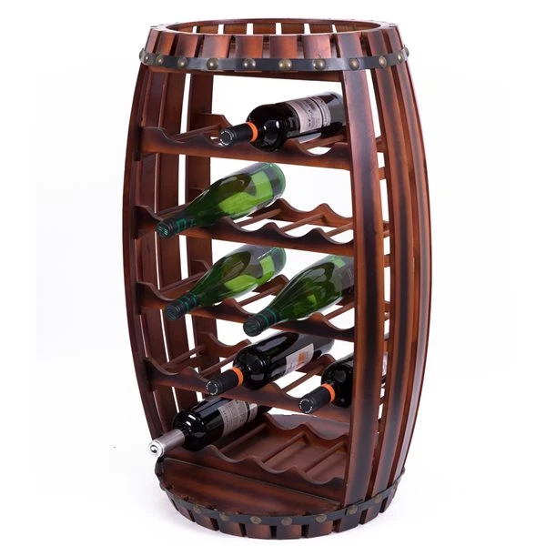 Complete the decor of your room with this vintage wine holder. Composed out of a durable wood material, this wine holder offers durability and practical function for continual use. The vintage wooden material, studded details, and barrel shape will add a decorative appeal to your room. Use this wine holder to store up to 23 wine bottles and to keep your wine collection handy.