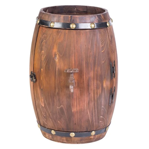 Complete the decor of your room with this vintage wine holder. Composed out of a durable wood material, this wine holder offers durability and practical function for continual use. The vintage wooden material, studded details, and barrel shape will add a decorative appeal to your room. Use this wine holder to store up to 7 wine bottles and as a centrepiece display to keep wine handy.