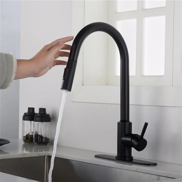 WELLFOR Matte Black 1-Handle Deck Mount Pull-Down Touch Kitchen Faucet