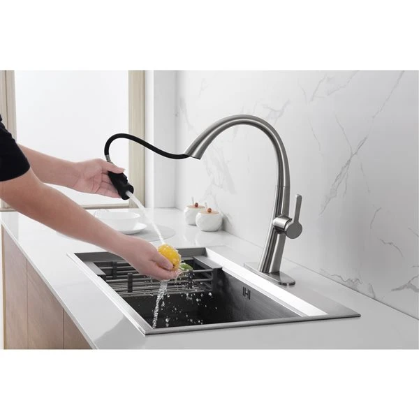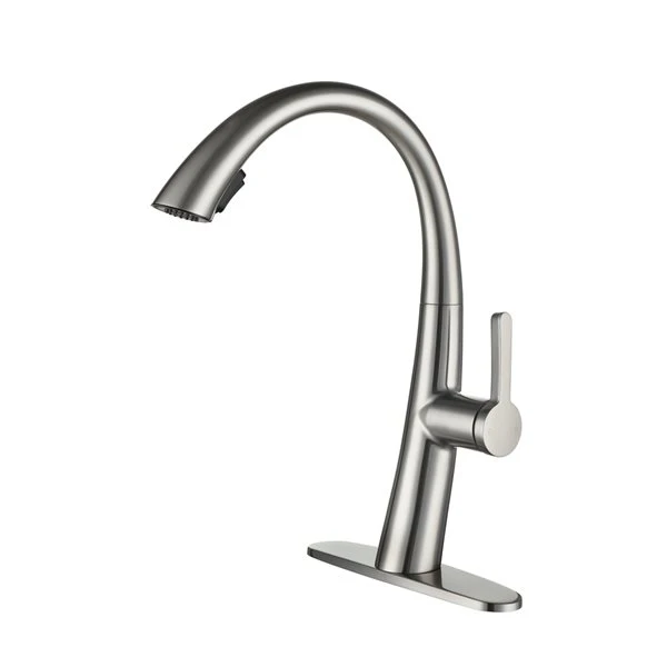 Streamway Nickel 1-Handle Deck Mount Pull-Out Handle/Lever Residential Kitchen Faucet