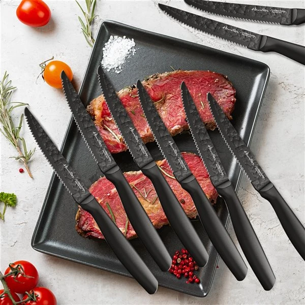 - Has a micro-serrated edge which makes it ultra-sharp to cut steaks, chicken, pork, pizzas, fruits, and more with ease