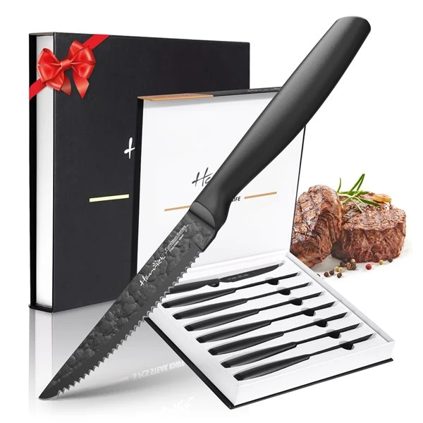Premium German high-carbon stainless steel ensures its exceptional strength, durability, and stain resistance, strong anti-corrosion and rust-free abilities. The serrated edge is ideal for cutting steak, pork, and poultry.